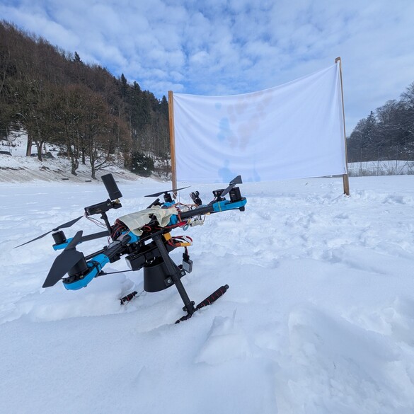 Um äussere Einwirkungen wie Wind zu neutralisieren, kommt ein Gimbal zum Einsatz. Er sorgt dafür, dass Abweichungen der Drohne automatisch korrigiert werden und die Farbe exakt auf den gewünschten Punkt trifft.