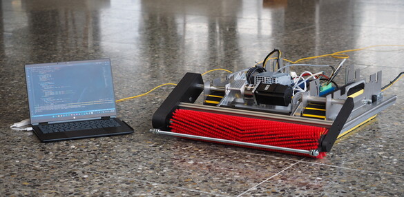 Der Prototyp verfügt über mehrere Motorcontroller, die über Ethernet mit dem Laptop verbunden sind. Die Steuerung des Roboters erfolgt manuell über die Tastatur. Die Stromversorgung erfolgt derzeit noch über ein Netzgerät.