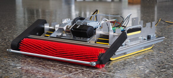 Für die Reinigung wird ein Bürstenantrieb verwendet, der hartnäckigen Schmutz entfernt, ohne die Oberfläche der Solarmodule zu beschädigen. Damit der PV-Roboter schräg montierte Anlagen reinigen kann, soll er Steigungen bis 30° sicher und zuverlässig überwinden können.
