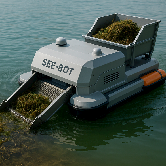Der See-Bot soll ein autonom arbeitender Roboter sein, der das Ufergewässer gezielt von überschüssigem Seegras befreit. Er sammelt das Pflanzenmaterial effizient ein, lädt es auf und bereitet es für den Abtransport vor – etwa zur Weiterverarbeitung in umweltfreundliche Produkte wie Karton. Damit schaffen wir einen nachhaltigen Kreislauf, der natürliche Ressourcen sinnvoll nutzt.
